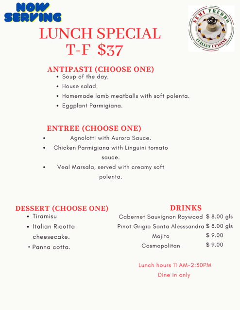 Grilled chicken breast, wild mixed mushrooms, cream sauce, served with mixed vegetables and creamy soft polenta