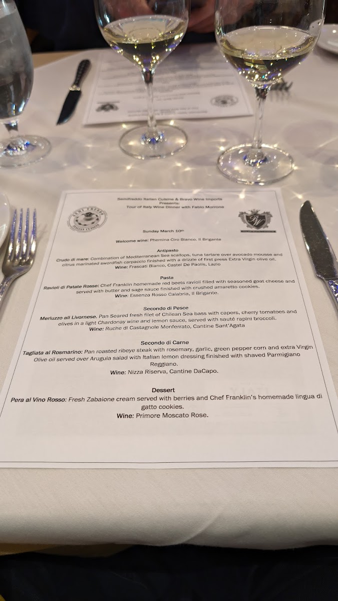 Veal scaloppini, prosciutto, sage, white wine sauce, served with soft polenta and vegetables